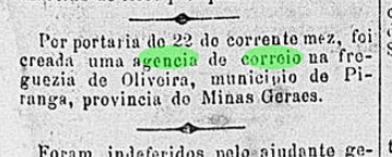 Wie die Presse aus Rio de Janeiro mitteilte, gab es dort seit Juli 1887 ein Postamt: