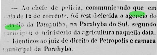 Here we are dealing with another locality that seems to have disappeared from the map today. Pampulha was a district of the Freguesia de Sant’Anna de Cebolas in the Município de Paraíba do Sul, located 110 kilometres north of the capital Rio de Janeiro. In December 1896, Pampulha became a district of Santana de Tiradentes. This was renamed Inconfidência in December 1938 and has remained so to this day.