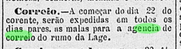 Im November 1882 wurde entschieden, das Postamt einige Kilometer weiter nördlich im Vorort Rumo da Lage zu eröffnen. Laut einer Pressemeldung erfolgte die Inbetriebnahme dieser Agentur jedoch erst im August 1883, sodass in der Zwischenzeit der Postverkehr ruhte.