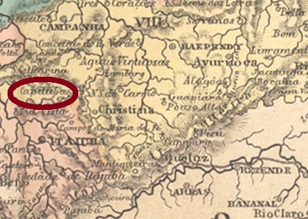 São Sebastião do Capituba was a freguesia of Christina from July 1832, situated 400 km southwest of the provincial capital Ouro Preto. Capituba is the name given in Brazil to an aquatic plant (Rynchospora aurea) of the Cyperaceae family: