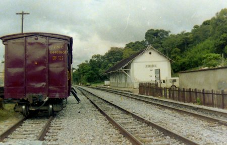 In August 1896, a station on the main line of the E.F. Oeste de Minas railway company was opened there. The railway line was transferred to Rede Mineira de Viação in 1931, to V. F. Centro-Oeste in 1965, and belonged to Rede Ferroviária Federal S. A. from 1975 until its closure in 1996 (estacoesferroviarias.com.br). Today, the tracks are still in place and the station building serves as the community’s cultural centre.
