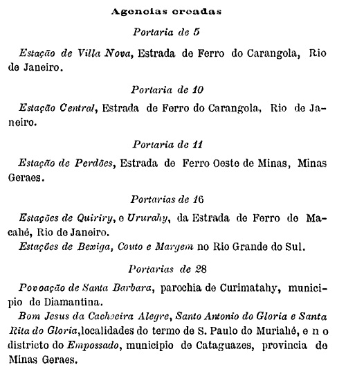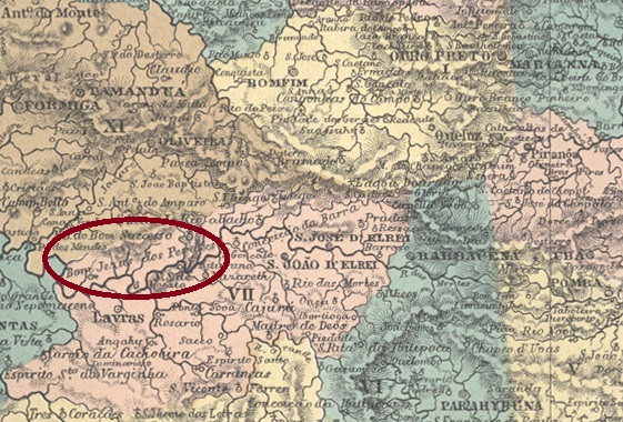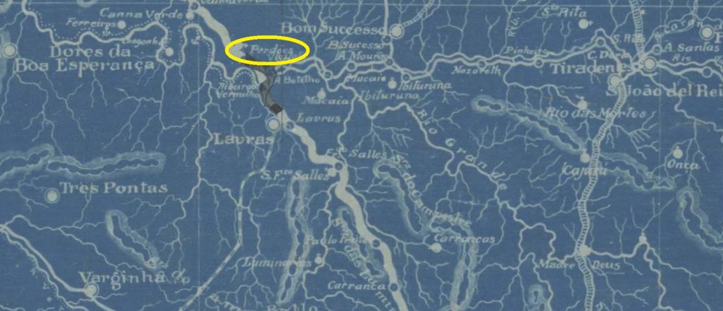 Paula Sobrinho in História Postal de Minas Gerais (Belo Horizonte, 1997) und R. Koester (Carimbologia XXX) sind sich einig, dass es dort seit Juni 1877 ein Postamt gab. Der bisher älteste Poststempel ist PMG-1900a (Samml. Márcio Duarte):