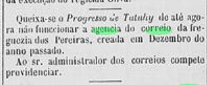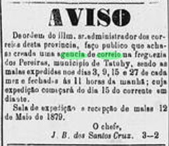 Das Verzeichnis der kaiserlichen Postämter (Tabella das Agencias do Correio do Imperio, Rio de Janeiro, 1885) listet die Agentur jedoch mit dem Gründungsjahr 1879 auf, was eher dem Betriebsbeginn entsprechen würde.