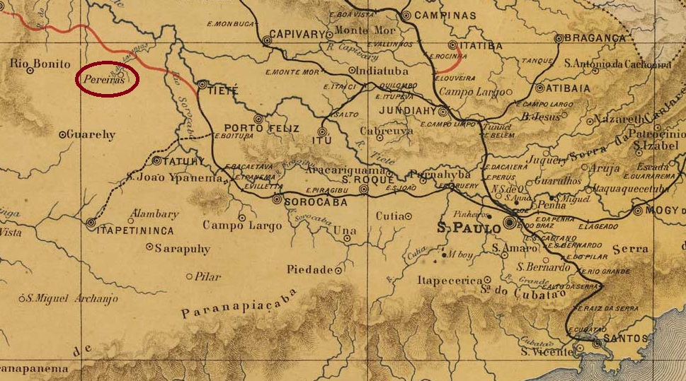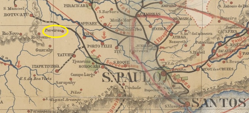 The parish of Nossa Senhora da Conceição dos Pereiras had existed since March 1876 and belonged to the town of Tatuhy. It was situated on the eastern bank of the Ribeirão das Conchas, 170 kilometres north-west of the provincial capital, São Paulo. In 1889 it became a town and, in December 1906, finally the city of Pereiras.