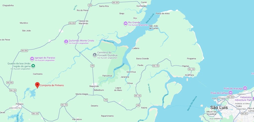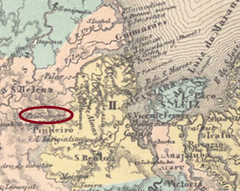 Here we are once again dealing with a place that has since disappeared from the map. Pericumã (the modern spelling) is a river that was altered by a dam in 1982, causing the old settlement of the same name to be flooded. In September 1856, the latter was a settlement of Vila de Pinheiro, situated 120 km west of the provincial capital, São Luís do Maranhão. In July 1866, it became a district and was renamed Gama in May 1884.