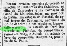 According to reports in the Rio de Janeiro press, there had been a post office there since August 1889.