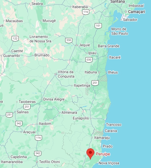 The station was opened in 1882 by the Chemins de Fer Fédéraux de l’Est Brésilien railway company on the north bank of the Peruipe River in the municipality of Caravelas, 720 kilometres south of the provincial capital, Salvador da Bahia. From 1936 until its closure around 1960, the railway line belonged to E.F. Bahia-Minas (estacoesferroviarias.com.br). From November 1938, the station was located in the district of Juerana. Today, the tracks and the station building have disappeared.