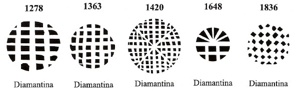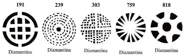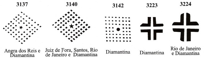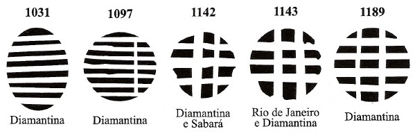 Aus Diamantina kommt eine erstaunliche Menge an stummen Stempeln in der Kaiserzeit. Nicht weniger als 54 Stück zählte Mute Cancellations of the Brazil Empire / Carimbos Mudos do Brasil Império (Brazil Philatelic Association, Rio de Janeiro, 2000), von James Dingler und Klerman W. Lopes: