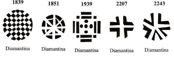 Bis ca. 1836 hatten die Poststempel noch die Ortsbezeichnung Tejuco (siehe TMG-3740). Der erste Poststempel mit Diamantina ist VMG-3745a der unter Paulo Ayres (Catálogo de Carimbos Brasil-Império, S. Paulo, 1937, 1942) die Nr. 1524 hat und im RHM-Katalog unter P-MG-26 gelistet wird: