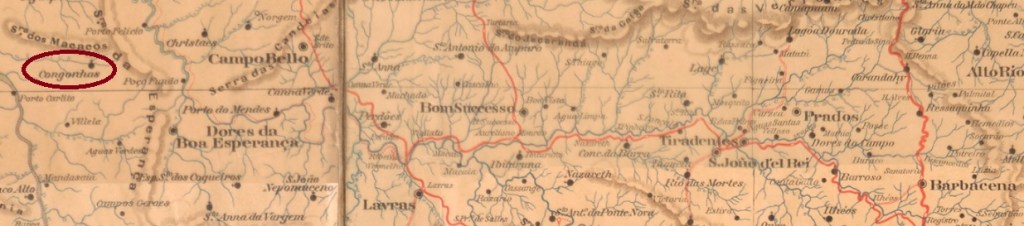 Neben dem Postamt Congonhal (CMG-0835) gab es in der kaiserlichen Provinz Minas Gerais fünf Postämter, die den Namen Congonhas trugen. Das erste war seit November 1746 eine Freguesia, die zur Hauptstadt Vila Rica gehörte und 50 km westlich von dieser am Nordufer des Maranhão lag. Im September 1923 ging sie als Distrikt an das Município de Queluz über und wurde im Dezember 1938 zum Município de Congonhas do Campo, das 10 Jahre später den Ortsnamen zu Congonhas verkürzte.