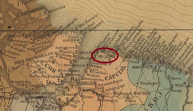 The Indian settlement of Maracanan was located on the left bank of the river of the same name, 170 kilometres north-east of the later provincial capital of Belém do Pará. After missionisation and colonisation, it became the Freguesia de S. Miguel de Cintra around 1700, again named after a Portuguese community, as was customary in Pará. The Brazilian Cintra became a Vila in June 1755 and a town in October 1885, which has been called Maracanã again since May 1897.