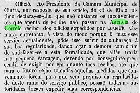 The only postmark from Cintra in the 19th century to date, CPA-0080b, was provided by the philatelist Fuad Ferreira Fo:
