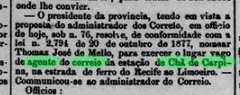 However, the directory of imperial post offices (Tabella das Agencias do Correio do Imperio, Rio de Janeiro, 1885) lists the agency without a founding date, and a local postal employee is only introduced in January 1885: