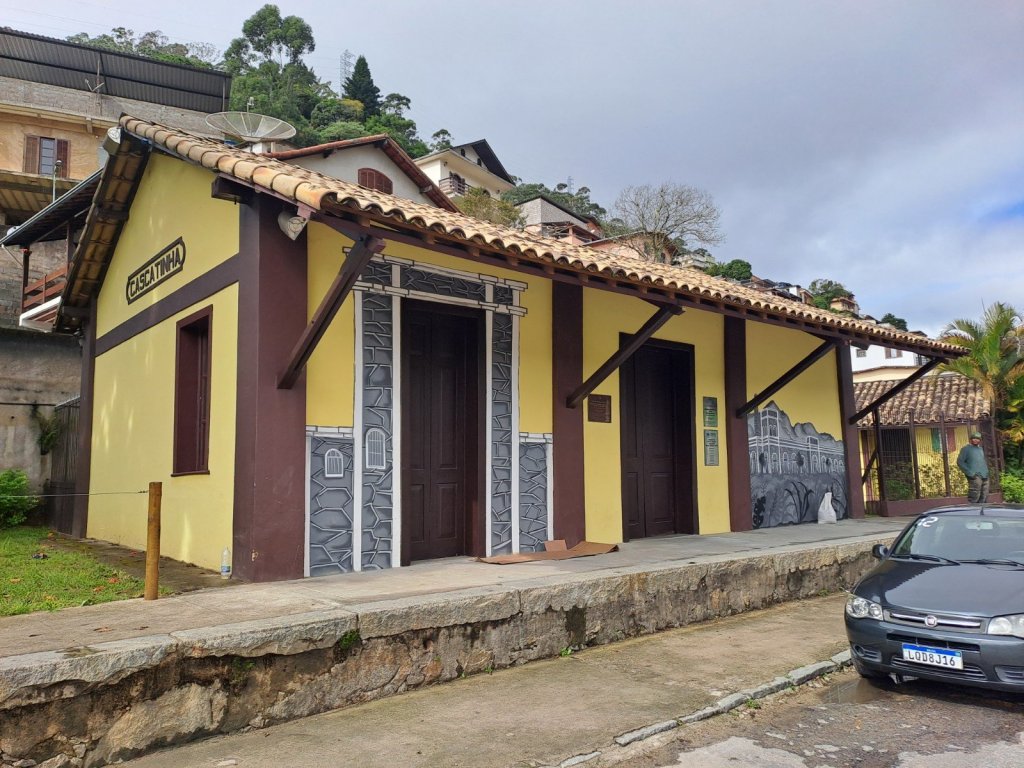 Cascatinha (Little Waterfall) station was opened in February 1886 by the E.F. Príncipe do Grão-Pará railway company and was located on the east bank of the Piabanha in the Vila de Petrópolis region, over 70 km north of the capital Rio de Janeiro. The line belonged to E.F. Leopoldina from 1890 until it was closed. Today, the tracks have disappeared and the station building serves as a museum (estacoesferroviarias.com.br).