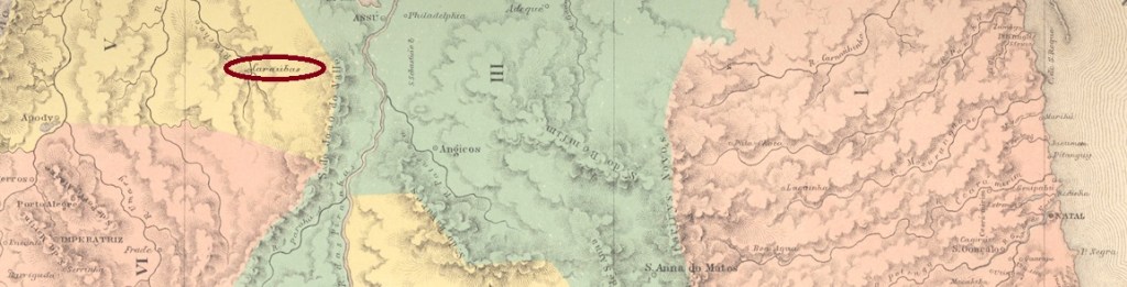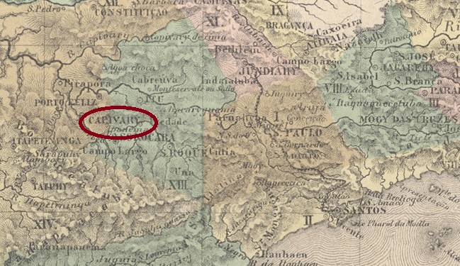 The Freguesia de Sant’Anna da Ressaca was founded in July 1872, belonged to the Vila de S. José d’El-Rei and was located on the south bank of the Carandaí, 90 km south of the provincial capital Ouro Preto. Already in July 1876, the name was changed to Sant’Anna de Carandahy, probably because the village was moved closer to the river. Ressaca was the name of an old fazenda in the area. The name Carandahy comes from the Tupi language and means river of the Carandás. Carandá is a palm from the Arecaceae family, such as Copernica australis.