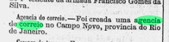 Für die Gründung des örtlichen kaiserlichen Postamtes konnten drei Daten gefunden werden. Zum ersten Mal im Juli 1863, wie aus der Presse von Rio hervorgeht: