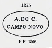 Merkwürdigerweise wird hier der Ortsname im Singular geschrieben (CAMPO NOVO). Reinhold Koester erwähnt auch einen Poststempel als Doppelkreis in Carimbologia VIII, leider ohne Abbildung. Dieser wäre CRJ-0280b und wir bleiben gespannt, ob der Ortsname hier richtig zu lesen ist.