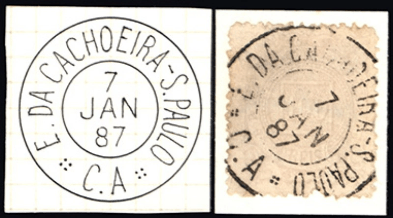 Dieser Postort mit Bahnhofspostamt bereitet allen philatelistischen Forschern, die sich damit beschäftigen, in mehrfacher Hinsicht Kopfzerbrechen. Denn sowohl der offizielle Ortsname, der offenbar in keinem Poststempel auftaucht, als auch das Zusammentreffen zweier nicht zueinander passender Eisenbahnlinien zeugen von chaotischen Post- und Verkehrsverhältnissen im kaiserlichen Brasilien. Und das ist nur ein Teil der verworrenen Geschichten, die sich um Cachoeira in São Paulo ranken. Dennoch wollen wir versuchen, ein wenig Licht ins Dunkel zu bringen.