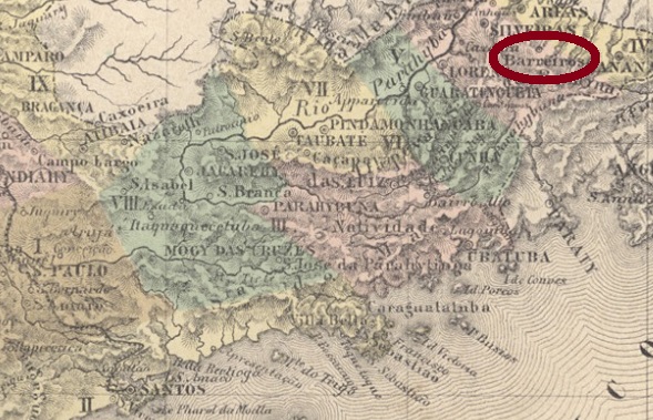 Laut Nova Monteiro (Administrações e Agencias Postaes do Brasil Imperio, in Brasil Filatelico/RJ, 1934-5; Reprint SPP 1994-1999) entstand das örtliche Postamt bereits im Dezember 1834. Die ersten zwei Stempel der Agentur trugen die Bezeichnung BARREIRO. Der erste davon ist BSP-0110a, der zumindest zwischen 1843 und 1850 verwendet wurde, auch in blau und braun vorkommt und bereits durch P. Ayes in Catálogo de Carimbos Brasil-Império, (S. Paulo, 1937, 1942) unter Nr. 1233 bekannt ist: