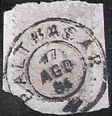 Sein Nachfolger BMG-0215b (Abb. aus dem Internet): ein Doppelkreis mit den Inschriften B. DO COTEGIPE oben und (MINAS) unten. Die Daten in der Mitte entstammen dem Zeitraum 1888-1897.