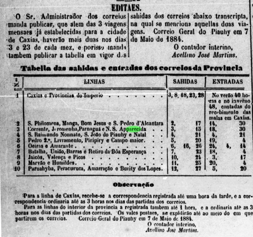 On the other hand, the Directory of Imperial Post Offices (Tabella das Agencias do Correio do Imperio, Rio de Janeiro, 1885) writes the year 1882, which could be the date when the post office started operating. So far, no postmark from this station has been seen in the imperial period.