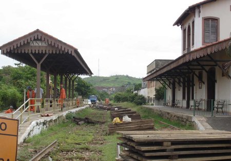 Anta (Tapir) station was inaugurated in December 1875 by the E.F. Dom Pedro II railway company (Porto Novo Branch) and was located on the south bank of the Paraíba do Sul river in the Município of Sapucaia, 150 km north of the capital Rio de Janeiro. The railway line went to E.F. Central do Brasil in 1890 and to E.F. Leopoldina in 1965; from 1976 until its closure in 1997, it belonged to Rede Ferroviária Federal S.A. (estacoesferroviarias.com.br).