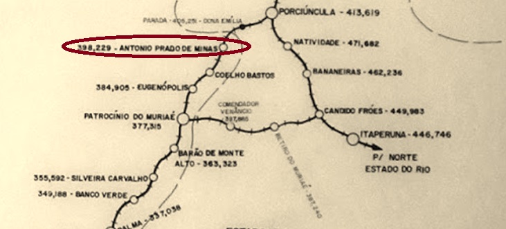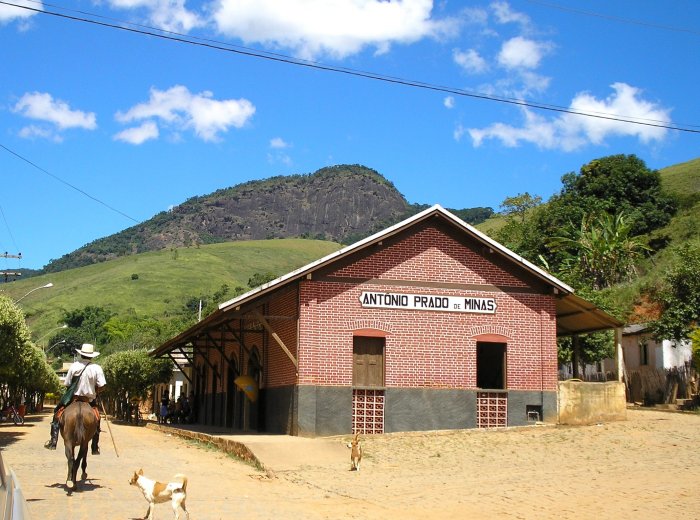Der Bahnhof Antonio Prado wurde im Januar 1886 von der E.F. Leopoldina, Manhuassú-Abzweigung, eingeweiht und lag im Município von S. Paulo do Muriaé an der Provinzgrenze zu Rio de Janeiro, 220 km südöstlich der Hauptstadt Ouro Preto entfernt. Die Bahnlinie gehörte von 1975 bis zur Streckenstilllegung 1979 der Rede Ferroviária Federal S.A. (estacoesferroviarias.com.br). Inzwischen wurden die Schienen entfernt, das Bahnhofsgebäude ist heute der Sitz einer Milcherzeugerkooperative.