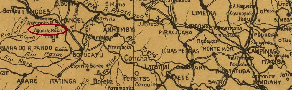 The freguesia of Apparecida de Agua da Rosa was founded in April 1882 in the Município of Botucatu, 260 km west of the provincial capital of São Paulo. In March 1885, it changed to the newly founded Município of S. Manoel. After that, the place name changed twice: in November 1938 to Água da Rosa and in February 1959 to the still current Aparecida de S. Manuel.