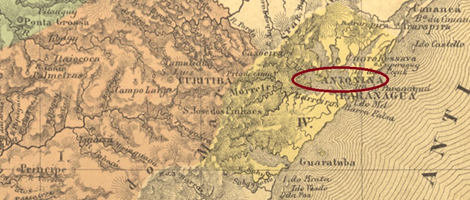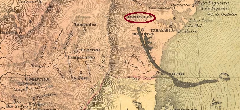 The chapel of N. Sra do Pilar da Graciosa was built in September 1714 and was located in the bay of the Vila of Paranaguá, 80 km east of the future provincial capital Curitiba. The village was elevated to freguesia in February 1761 and to the vila of Antonina in August 1797, before changing from the province of São Paulo to the province of Paraná in 1854. Antonina has been a town since January 1857. The name is said to be a tribute to D. Francisco Antonio (1795-1801), the first-born son of D. João VI, who held the title of Principe da Beira until his untimely death at the age of six.