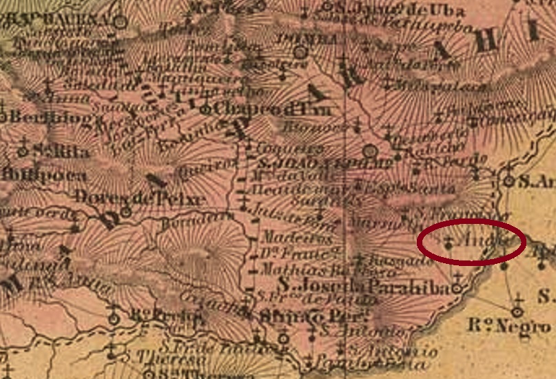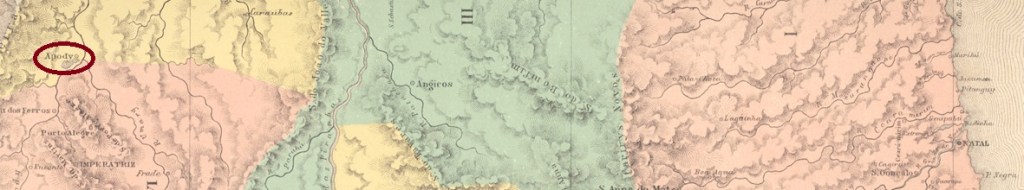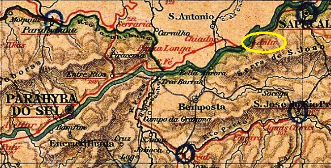 The word Angu has African origins and means thick porridge (usually made of cassava, maize or also bananas). The chapel of N. Sra. da Madre de Deus do Angu was built in March 1841 on the south bank of the (probably viscous) Angu River and was located in the Município of Rio Pomba, 250 km south of the provincial capital Ouro Preto. The place was elevated to freguesia status in July 1857 and was given the name Madre de Deus d’Angustura in October 1883, when it changed to the Município of Além Parahyba.