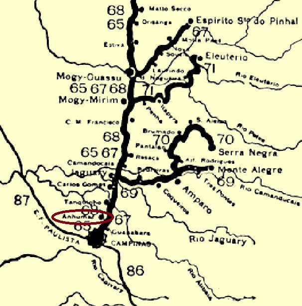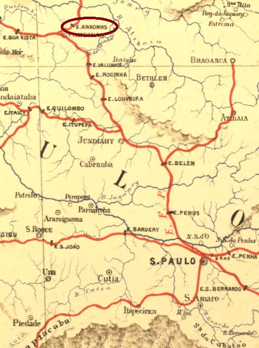 Der Bahnhof Anhumas wurde im Mai 1875 durch die Cia. Mogyana Bahngesellschaft (Hauptlinie) eingeweiht und lag am Ostufes des Flusses Anhumas im Município von Campinas, 100 km nördlich der Provinzhauptstadt São Paulo. Das Bahnhofsgebäude wurde 1925 abgerissen und durch ein anderes ersetzt, das 200 m weiter östlich lag.