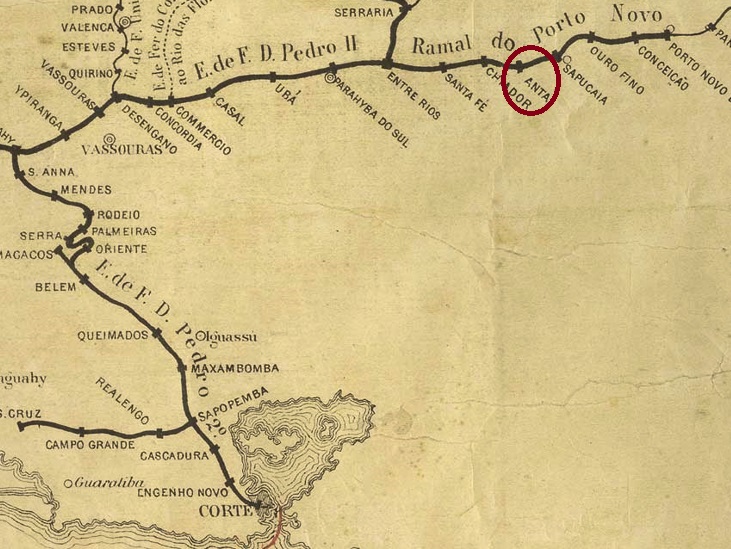 Der Bahnhof Anta (Tapir) wurde im Dezember 1875 durch die E.F. Dom Pedro II Bahngesellschaft (Porto Novo-Abzweigung) eingeweiht und lag am Südufer des Flusses Paraíba do Sul im Município von Sapucaia, 150 km nördlich der Hauptstadt Rio de Janeiro entfernt. Die Bahnlinie ging 1890 zur E.F. Central do Brasil und 1965 zur E.F. Leopoldina; von 1976 bis zur Stilllegung 1997 gehörte sie der Rede Ferroviária Federal S.A. (estacoesferroviarias.com.br).