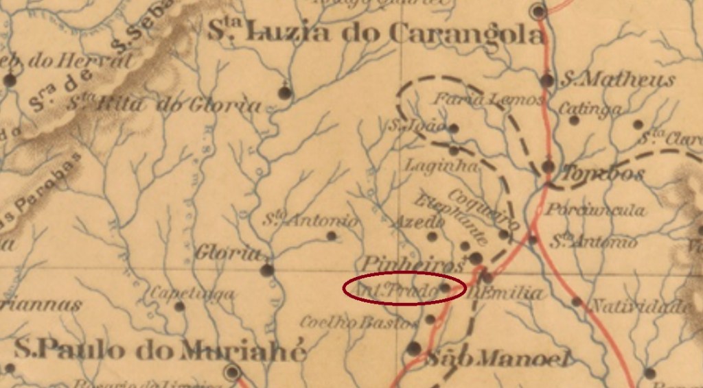 Around the station, the settlement continued to grow, becoming part of the Vila of S. Manuel (May 1891) and – as a district – of the newly created Município of Eugenópolis (December 1948). Since December 1962, it has been in the Município of Antonio Prado de Minas. The name celebrates the Paulista Antonio da Silva Prado (1840-1929), who was a famous personality of the empire as an imperial councillor, coffee farm owner, newspaper publisher, lawyer and also long-time chairman of the Cia. Paulista railway company.