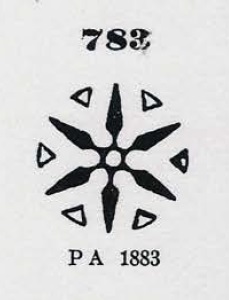 Its two successors are double circles, also appearing in blue: ARJ-0040b (Coll. Roberto Assef Jr:) has the inscription E. DE ANTA at the top, the dates in the middle go from 1883 to 1888. ARJ-0040c (Image RHM) has as the inscription above EST. DE ANTA, there is an ornament below that resembles a small circle with two ears. Its internal dates go from 1888 to 1890. ARJ-0040d was also made known by Paulo Ayres (op. cit.):