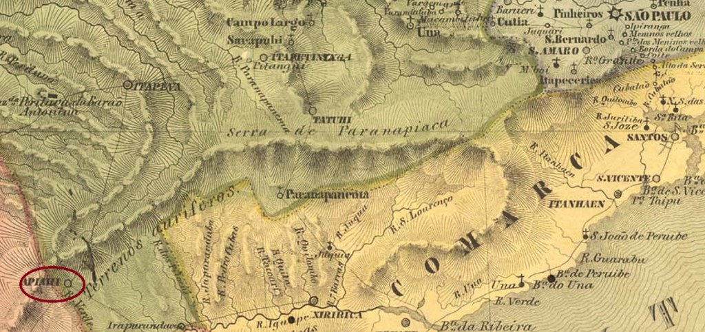 The settlement with the sonorous name Santo Antonio das Minas do Apiahy (St. Anthony of the Mines of Apiahy) was founded in March 1771, 310 km southwest of the future provincial capital São Paulo, and belonged to the Vila of Sorocaba. It became a vila in August of this century, but Apiaí – as it is written today – has only been a town since December 1906.