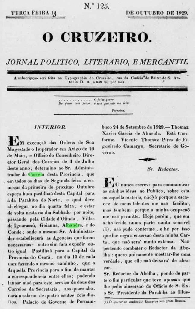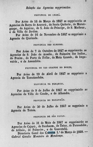 As one reads in the Directory of Imperial Post Offices (Tabella das Agencias do Correio do Imperio, Rio de Janeiro, 1885), there had been a post office there since 1880. This date is likely to be a reopening, as the Imperial Postal Guide (Guia Postal do Império do Brazil, Rio de Janeiro, 1880) already listed the agency. Two postmarks were found for the imperial period. API-0010a (illustration from the Internet) is a simple double circle with the inscription AMARANTE at the top and dates in the middle between 1883 and 1892. API-0010b was already presented to us by Paulo Ayres (Catálogo de Carimbos Brasil-Império, S. Paulo, 1937, 1942) on p. 144:
