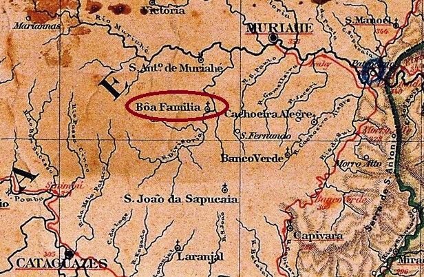 The Freguesia of S. Francisco de Paula de Boa Família was created in October 1866 in the Município of S. Paulo de Muriaé and was located close to the east bank of the Muriaé River, 220 km south-east of the provincial capital Ouro Preto. In November 1873 it became a district, which from December 1938 had its name shortened to Boa Família.