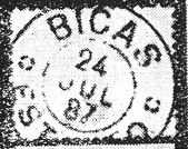 It was followed by BMG-0290b, described by R. Koester in Carimbologia IV as follows: a plain double circle without ornament at the bottom, the only specimen dated 1883 in the centre. The following double circle BMG-0290c (illustration from the internet) has the inscriptions BICAS at the top and (ESTAÇÃO) at the bottom, with inner dates from 1885 to 1886. And the third double circle BMG-0290d was also presented by R. Koester (op. cit.):