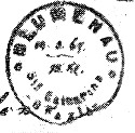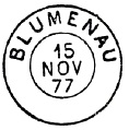 The local post office came into being in November 1874, as R. Koester wrote in Carimbologia IV. Three postmarks from the imperial period are shown in Paulo Ayres’ Catálogo de Carimbos Brasil-Império (S. Paulo, 1937, 1942). Of these, BSC-0025a is the oldest. It was used even before the opening of the post office, as it was in use from the postage-free colonist letters until at least 1876. Known through Paulo Ayres under no. 1560:
