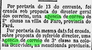 Wie die Presse aus Rio meldete, gab es dort ein Postamt seit Januar 1882: