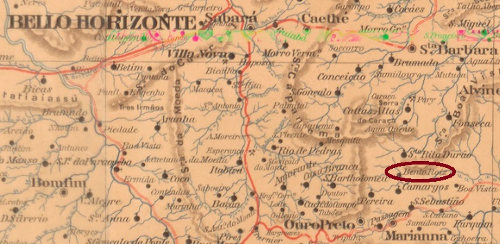 The settlement called N. Senhora da Conceição de Bento Rodrigues originated around 1844 near the Vila of Mariana and was located 40 km north of the provincial capital Ouro Preto. In November 1880, it became a freguesia, but did not grow any further. Until 2015, Bento Rodrigues was a hamlet in the district of Sta. Rita Durão, then it was destroyed by a dam burst and is to be rebuilt 9 km further on.