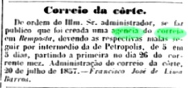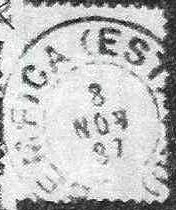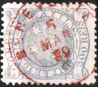 Ttwo mute postmarks were also used, which are registered in the Mute Cancellations of the Brazil Empire / Carimbos Mudos do Brasil Império (Brazil Philatelic Association, Rio de Janeiro, 2000) under nos. 2909 and 2912: