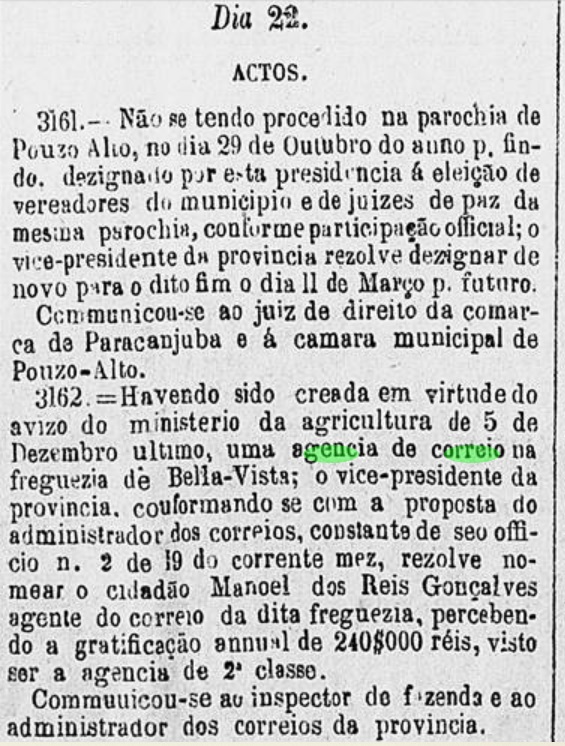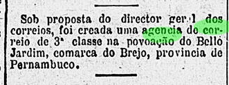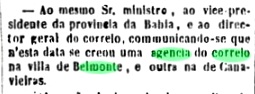 The local post office was established in October 1831, when the town was still called Benevente, as Nova Monteiro writes in Administrações e Agencias Postaes do Brasil Imperio (Brasil Filatelico/RJ, 1934-5; reprint SPP 1994-1999). The first postmark has not yet been found, the second is BES-0195b and has already been shown by. R. Koester in Carimbologia IV: