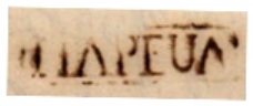So far, seven Faxina or Itapeva postmarks have been found for the 19th century, starting with the pre-philatelic ISP-1665a (fig. Mário Celso Orsi Jr.), which is registered in the RHM catalogue under P-SP-14: