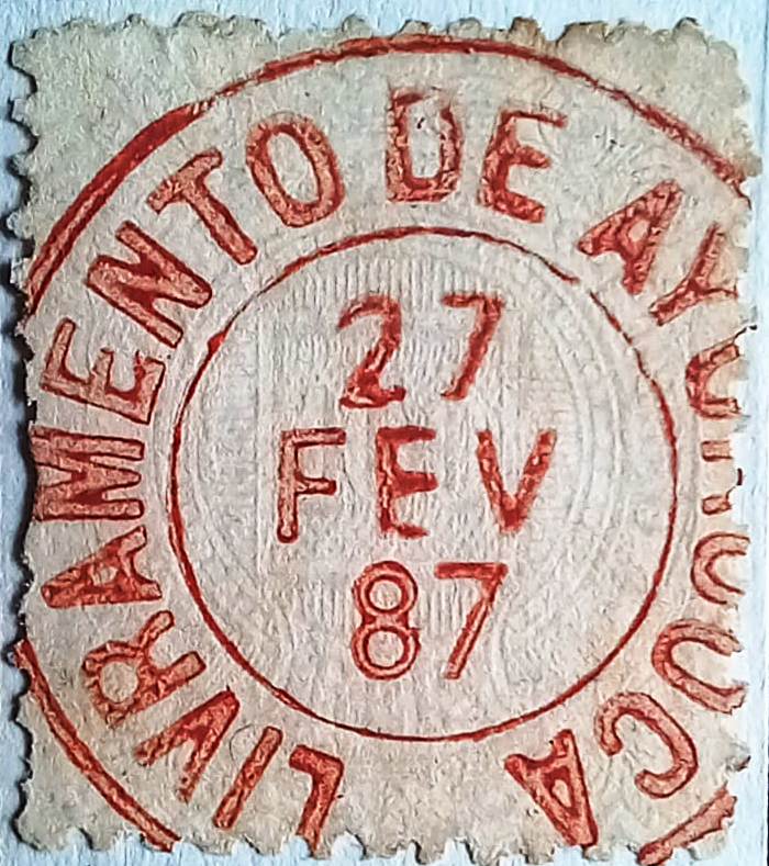 Paula Sobrinho (História Postal de Minas Gerais, Belo Horizonte, 1997) und R. Koester (Carimbologia XXVI) sind sich einig, dass es dort seit August 1872 ein Postamt gab. Der bisher einzige kaiserliche Poststempel ist LMG-1510a (Samml. Fuad Ferreira Fo.), der auch in Rot vorkommt: