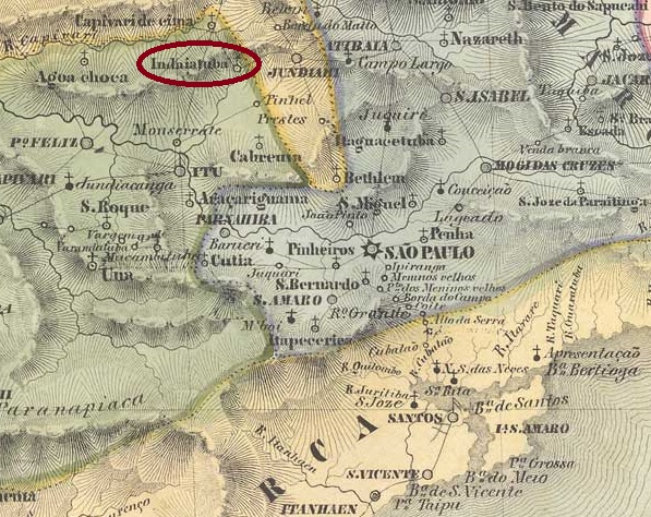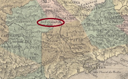 The Freguesia de N. Sra da Candelária de Indaiatuba (also spelt Indayatuba) was founded in December 1830, belonged to the Vila de Itu and was located on the east bank of the Córrego Barnabé, 100 km north-west of the provincial capital of São Paulo. It became a vila in March 1859 and a town in December 1906. The Indian name Indaiatuba means many palm trees.