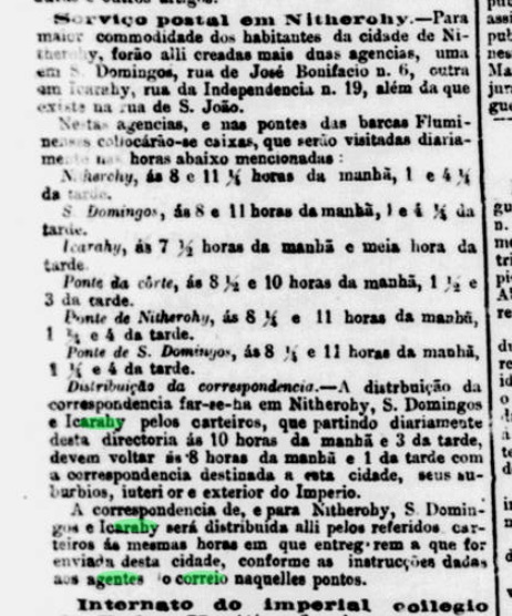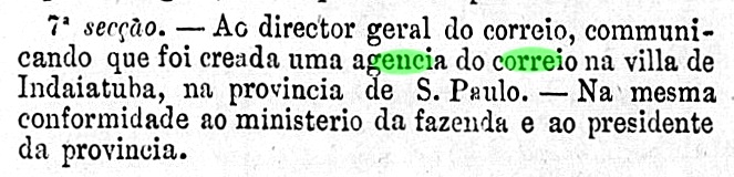 Nova Monteiro schreibt in Administrações e Agencias Postaes do Brasil Imperio (Brasil Filatelico/RJ, 1934-5; Nachdruck SPP 1994-1999), dass es dort seit Juli 1860 ein Postamt gab. Dies wird durch das Bulletin des kaiserlichen Ministeriums bestätigt: