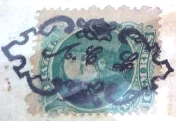 R. Koester (Carimbologia XXVI) and Paula Sobrinho (História Postal de Minas Gerais, Belo Horizonte, 1997) agree that there had been a post office there since November 1880. At first the stamps were cancelled by hand, as the illustration shows (collect. Fuad Ferreira Fo.):