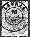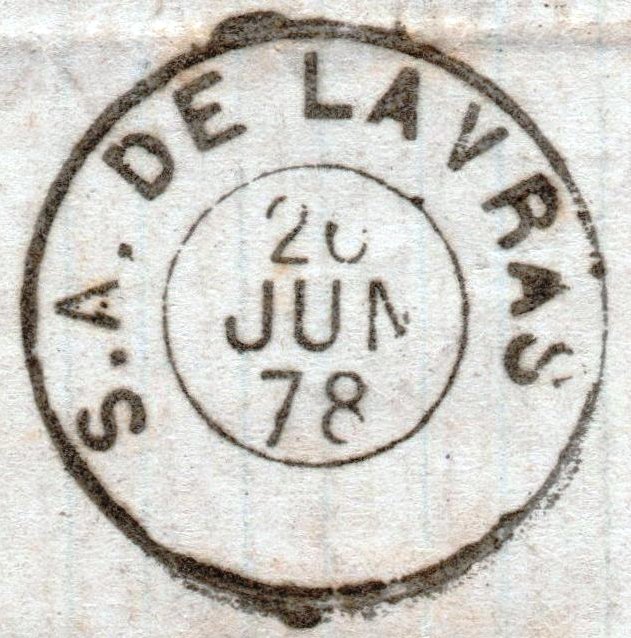 In imperial Rio Grande do Sul there were three post offices beginning with the letter L: Sant’Anna do Livramento (SRS-0530), Lagoa Vermelha (LRS-0205) and Santo Antonio de Lavras. All known Livramento postmarks mention Sant’Anna, and the missing letter V makes Lagoa Vermelha unlikely. Therefore, LRS-0210a is provisionally attributed to Lavras.
