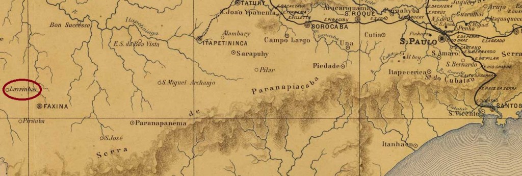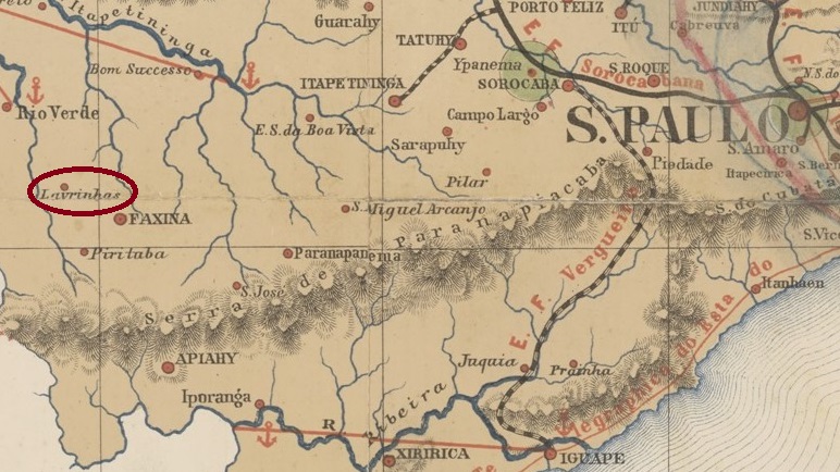 The list of imperial post offices (Tabella das Agencias do Correio do Imperio, Rio de Janeiro, 1885) shows that there had been a post office there since 1874. No imperial postmark of Lavrinhas near Faxina has yet been found.